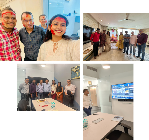 Our team culture emphasizes collaboration, respect, and the celebration of diversity. Photos from our Diwali and Holi celebrations highlighting our vibrant and inclusive workplace.